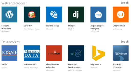 Check out Azure Marketplace here: http://azure.microsoft.com/en-us/marketplace/