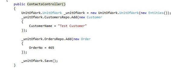 Here, both the Order and Customer repository use the same instance of DbContext and we are executing the save changes using the instance unit of work class. So the changes of a single transaction are either done for both or none. Run the code and see the results.